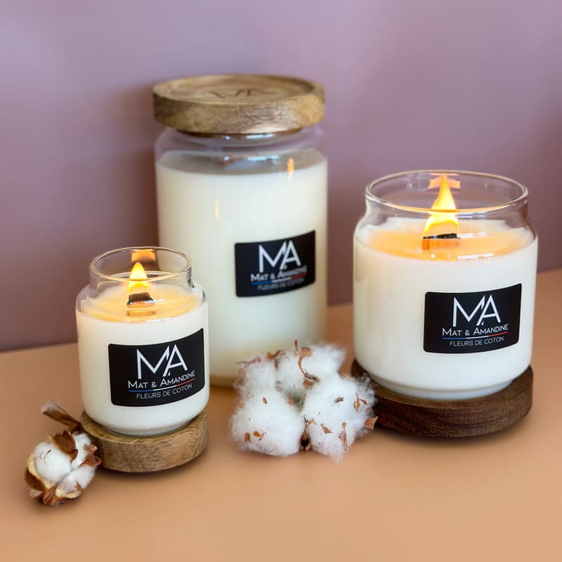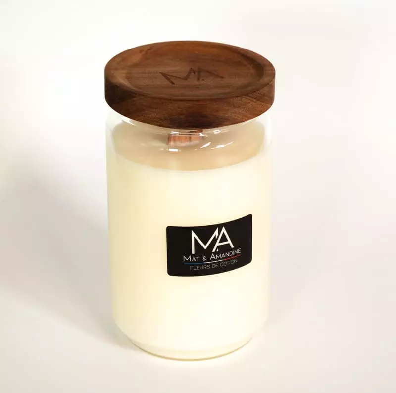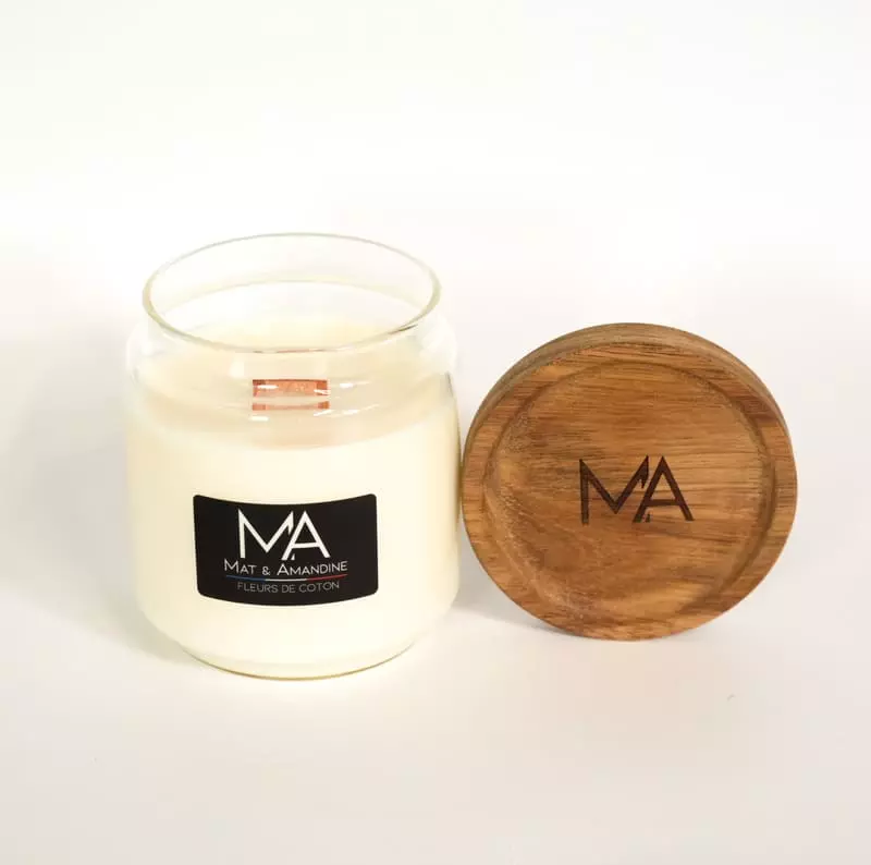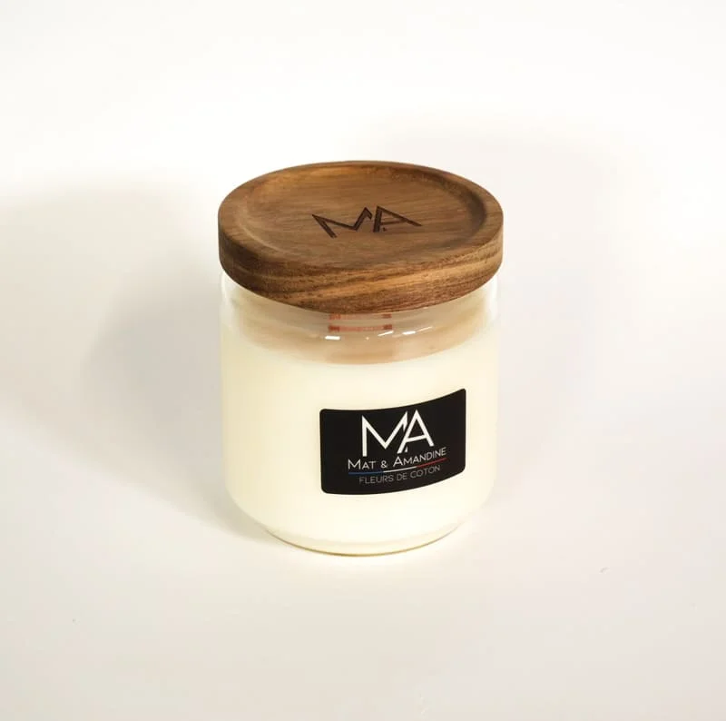 - Allumez la bougie parfumée fleurs de coton à l’aide d’un briquet Mat & Amandine.