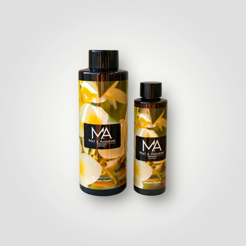 Rechargez votre diffuseur de parfum Mat & Amandine. Découvrez une expérience olfactive exceptionnelle avec notre recharge diffuseur Monoï, à utiliser dans votre diffuseur à bâtons Mat & Amandine. Conçu pour parfumer subtilement votre espace, notre diffuseur combine l’art du design avec l’efficacité d’une diffusion constante. Les bâtons plongés dans notre précieux mélange parfumé agissent comme des conducteurs magiques, absorbant et libérant lentement des notes envoûtantes dans l’air. Chaque pièce devient ainsi un tableau olfactif, une symphonie subtile qui éveille les sens et crée une atmosphère chaleureuse et enveloppante. Avec notre recharge diffuseur Monoï, offrez-vous le luxe d’une maison imprégnée de parfums délicats qui durent.