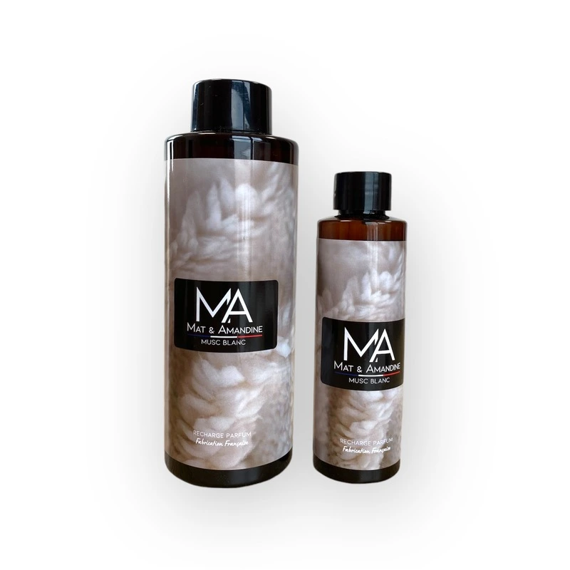 Rechargez votre diffuseur de parfum Mat & Amandine. Découvrez une expérience olfactive exceptionnelle avec notre recharge diffuseur Musc blanc, à utiliser dans votre diffuseur à bâtons Mat & Amandine. Conçu pour parfumer subtilement votre espace, ce diffuseur combine l’art du design avec l’efficacité d’une diffusion constante. Les bâtons plongés dans notre précieux mélange parfumé agissent comme des conducteurs magiques, absorbant et libérant lentement des notes envoûtantes dans l’air. Chaque pièce devient ainsi un tableau olfactif, une symphonie subtile qui éveille les sens et crée une atmosphère chaleureuse et enveloppante. Avec notre recharge diffuseur Musc blanc, offrez-vous le luxe d’une maison imprégnée de parfums délicats qui durent.