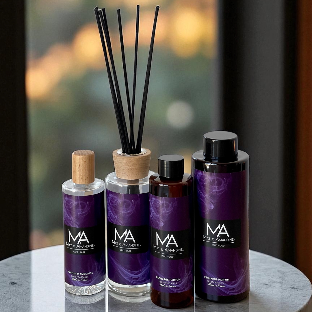 Rechargez votre diffuseur de parfum Mat & Amandine. Découvrez une expérience olfactive exceptionnelle avec notre recharge diffuseur Oud, à utiliser dans votre diffuseur à bâtons Mat & Amandine. Conçu pour parfumer subtilement votre espace, notre diffuseur combine l’art du design avec l’efficacité d’une diffusion constante. Les bâtons plongés dans notre précieux mélange parfumé agissent comme des conducteurs magiques, absorbant et libérant lentement des notes envoûtantes dans l’air. Chaque pièce devient ainsi un tableau olfactif, une symphonie subtile qui éveille les sens et crée une atmosphère chaleureuse et enveloppante. Avec notre recharge diffuseur Oud, offrez-vous le luxe d’une maison imprégnée de parfums délicats qui durent.