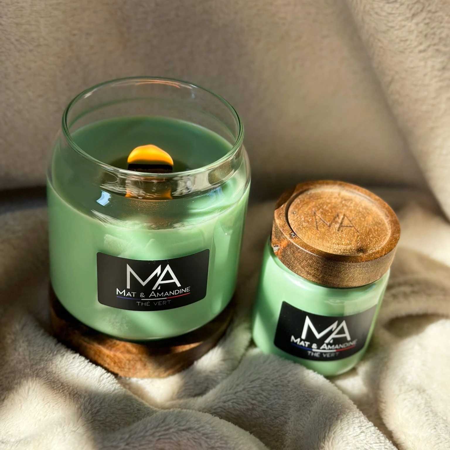 Découvrez la bougie parfumée Thé vert, à base de cire végétale de soja et d’une double mèche en bois d’érable. Cette fragrance délicate est un mélange subtil de bergamote pétillante, de jasmin délicat et de cèdre apaisant, créant une ambiance à la fois apaisante et revigorante. Dès que vous allumez cette bougie, vous serez accueilli par l’arôme frais et végétal du thé vert, évoquant un moment de calme et de relaxation. Les notes subtiles et acidulées de la bergamote ajoutent une touche vive et pétillante, apportant une sensation de fraîcheur et d’énergie. La bougie parfumée Thé Vert crée une atmosphère zen et sereine, idéale pour s’accorder une pause bien méritée. Son parfum équilibré vous transporte dans un voyage sensoriel où la fraîcheur, la délicatesse florale et la chaleur boisée s’harmonisent parfaitement.
